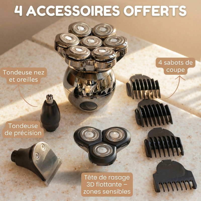 ✓Tête rotative 7D : 7 lames flexibles qui épousent les courbes du crâne pour un rasage précis et uniforme, tout en réduisant les irritations.